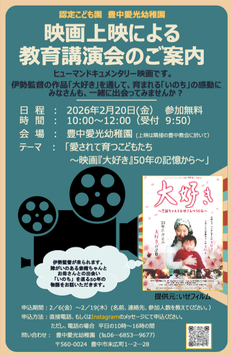 会 場 : 豊中愛光幼稚園 (上映は隣接の豊中教会に於いて)